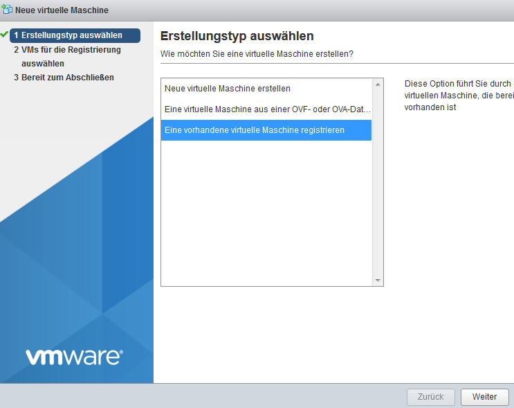 My first expectation was that moving a VM from Workstation to ESXi works out of the box and is quickly done… So I simply copied an existing VM (the .vmx file and the corresponding vmdk disk images) to the datasore of the ESXi host.