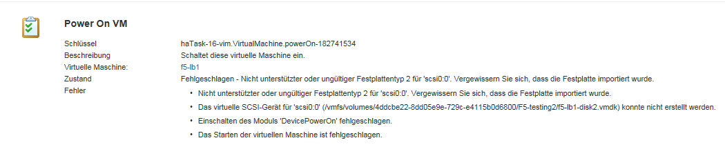 Das virtuelle SCSI-Gerät für 'scsi0:0' (/vmfs/volumes/4ddcbe22-8dd05e9e-729c-e4115b0d6800/F5-testing2/f5-lb1-disk2.vmdk) konnte nicht erstellt werden.